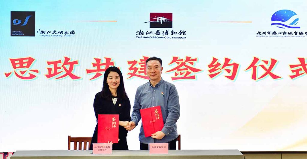 活动中,浙江省博物馆、浙江交响乐团与钱江新城实验学校正式签署馆、团、校党建思政教育共建协议,并为《红船从“浙”里起航》钱江新城实验学校站巡展揭幕。此次三方共建,是浙交依托“红色交响先锋领航”党建品牌,深化校团合作、搭建协同育人平台的重要实践,将持续推动红色文化、高雅艺术与校园思政教育深度融合。