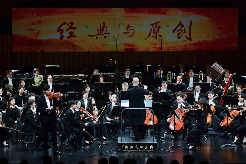 4月25日晚,浙江交响乐团“经典与原创”音乐会(公益惠民演出)在浙江音乐学院音乐厅精彩上演。浙江交响乐团携手驻团指挥欧阳汪剑及第五届维也纳国际音乐家比赛小提琴组第一名得主、青年小提琴演奏家陈雨田,为杭城观众带来了一场融合中国气韵与西方经典、民族情怀与时代强音的高品质交响乐盛宴。