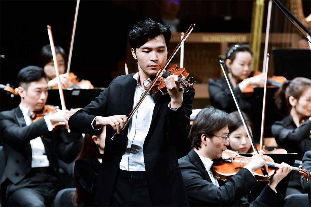 陈雨田在舞台上情绪饱满、自信潇洒,既奏出跌宕起伏的心绪,又融入了百转千回的思索,他全身心投入于音乐之中,将作品演绎得层次丰富、牵动人心。在弦乐声部的拨弦铺垫下,他以连绵的颤音营造出如泣如诉的氛围,在乐队排山倒海的齐奏中,他以酣畅淋漓的强奏收束全曲,赢得现场观众极为热烈的掌声。